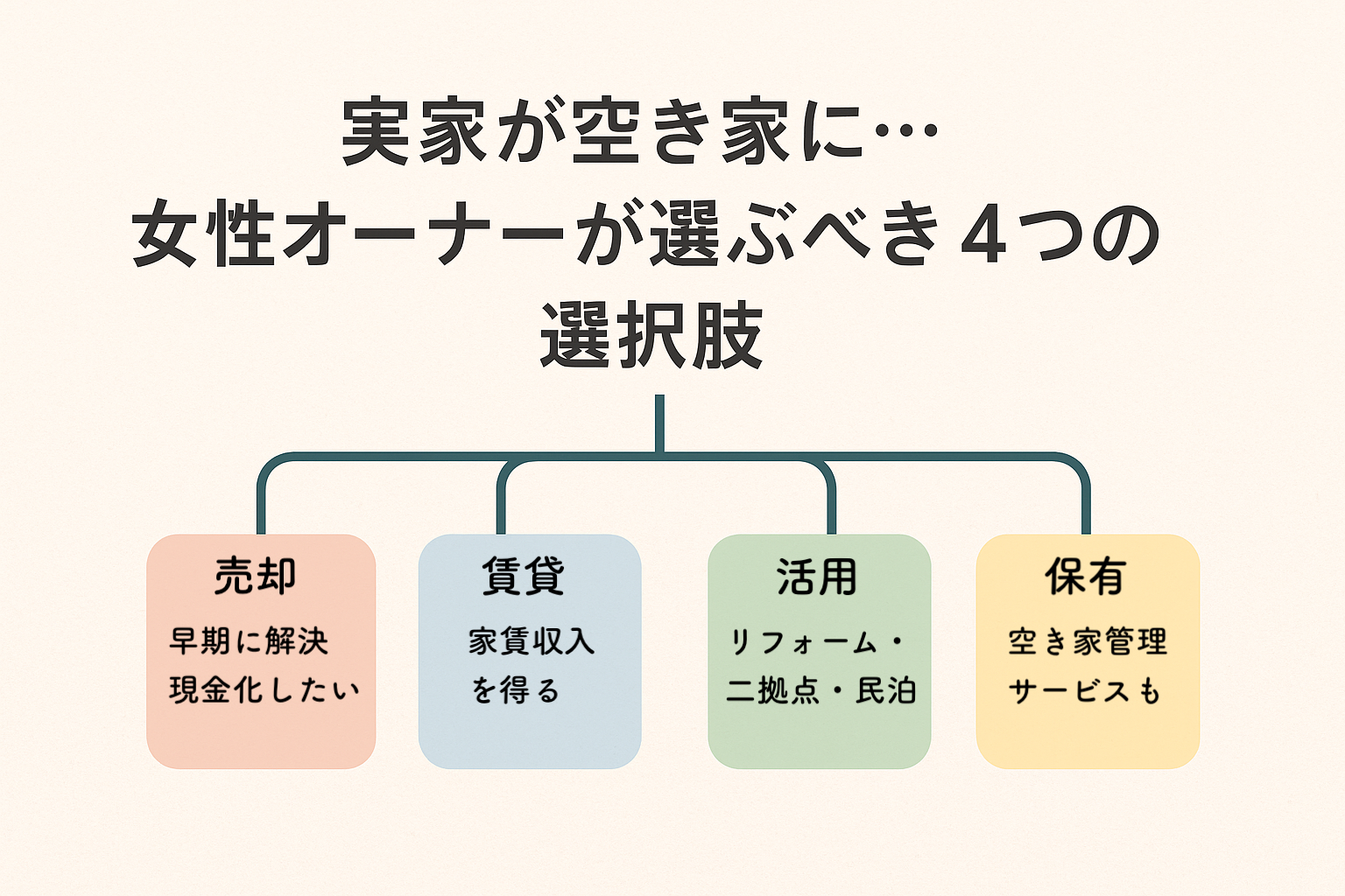 そんな時に考えられるのが、売却・賃貸・活用・保有の4つの選択肢。